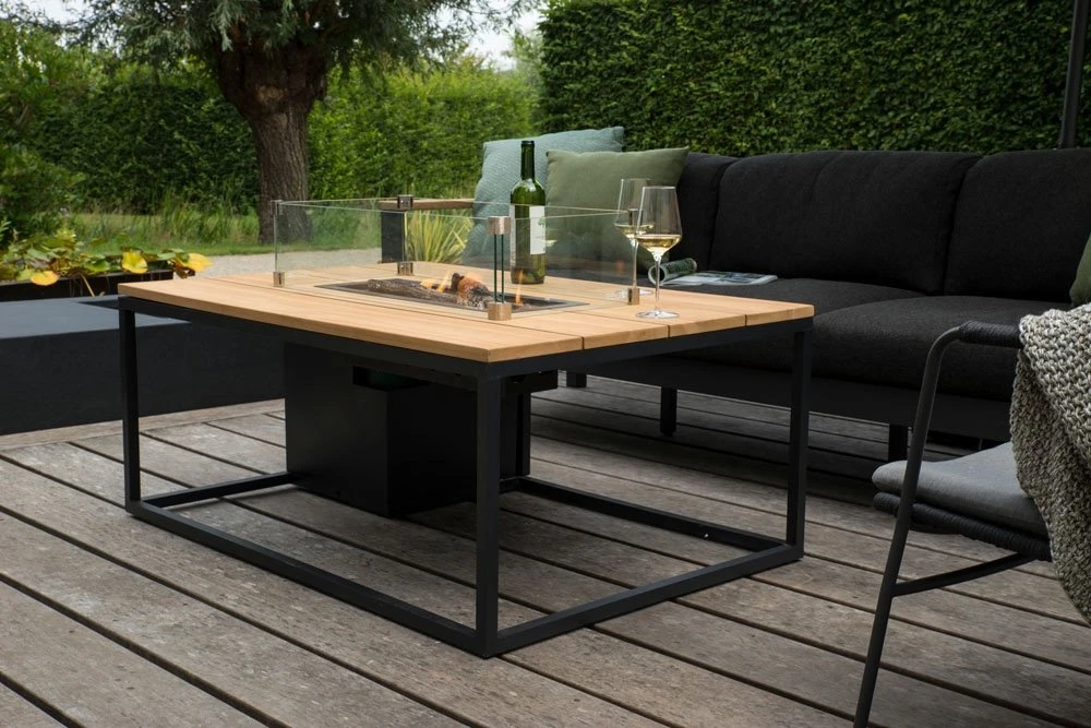 De COSILOFT 120 lounge table beschikt over een straight burner die genoeg ruimte geeft om al je vrienden en familie uit te nodigen voor een drankje. De COSILOFT is 80 cm breed en 120 cm lang. Deze vuurtafel heeft net als de COSILOFT 100 een mooi, opengewerkt aluminium frame dat gecombineerd kan worden met één van de drie tafelbladen: teak, zwart en grijs.