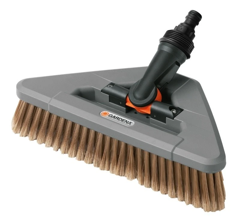 De GARDENA zwenkwasborstel kan op het waterleidingnet worden aangesloten en is voorzien van een Original GARDENA System-aansluiting. De GARDENA zwenkwasborstel heeft een praktische driehoekige vorm voor gebruik op niet-toegankelijke plekken. U kunt zonder problemen in hoeken en bochten komen die moeilijk toegankelijk zijn met andere borstels. Het draaischarnier helpt u daarbij. Het kan 360° draaien. De wasborstel is flexibel en eenvoudig in gebruik voor alle plekken. De borstel kan worden gebruikt met alle Original GARDENA Cleansystem Waterstelen (art. nr. 5552-20, 5550-20, 5554-20). Met de hoogwaardige borstelharen en een werkbreedte van 27 cm of 13 cm is deze borstel geschikt voor het zorgvuldig reinigen van kwetsbare oppervlakken, zoals rolluiken, kassen en serres. Met deze wasborstel wordt schoonmaken heel eenvoudig.