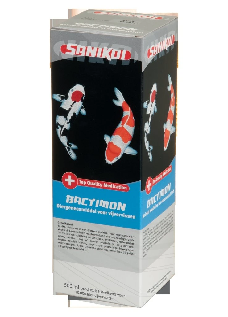 SaniKoi Bactimon is een diergeneesmiddel voor koudwater siervissen bij bacterie-infecties. Kenmerkend zijn veranderingen zoals het verlies van huiddelen en schubben, zwellingen, kraterachtige gaten, wonden met of zonder roodachtige omgrenzingen, zweren, rafelige vinnen, trage en/of plotselinge bewegingen, verkrampingen, donkerkleurende en/of opgezette buik bij gelijktijdig opgezette schubben.